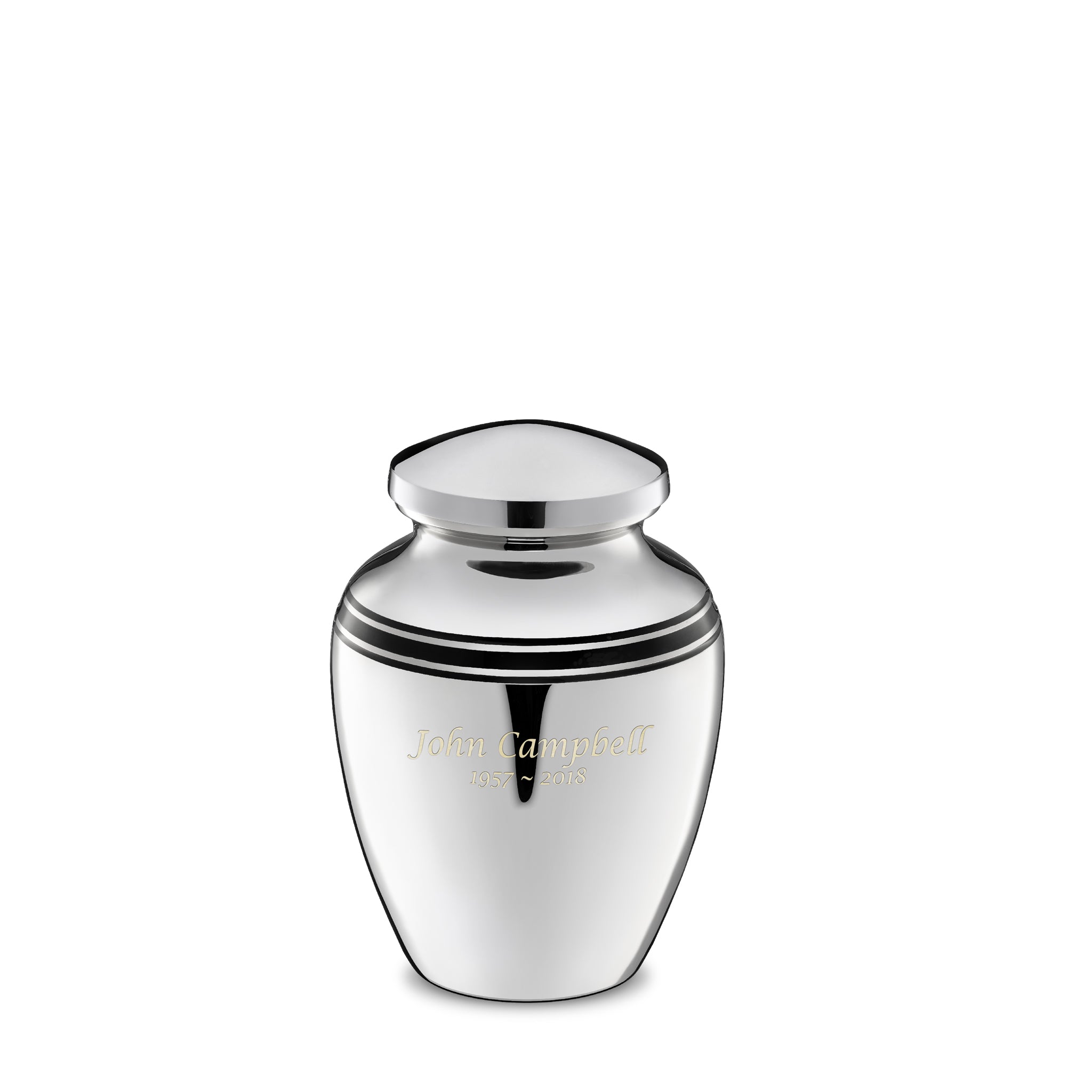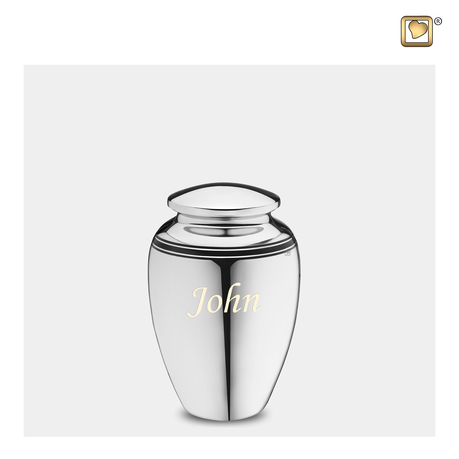 The keepsake urn is a smaller urn which allows one to place a portion of the ashes into the urn for safekeeping, and can be personalized with careful engravings of names, dates, or brief messages of love.
