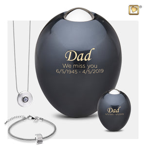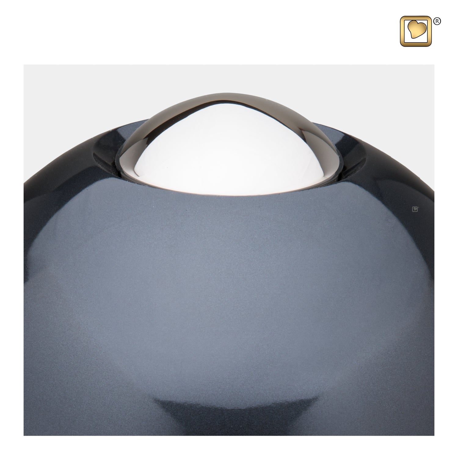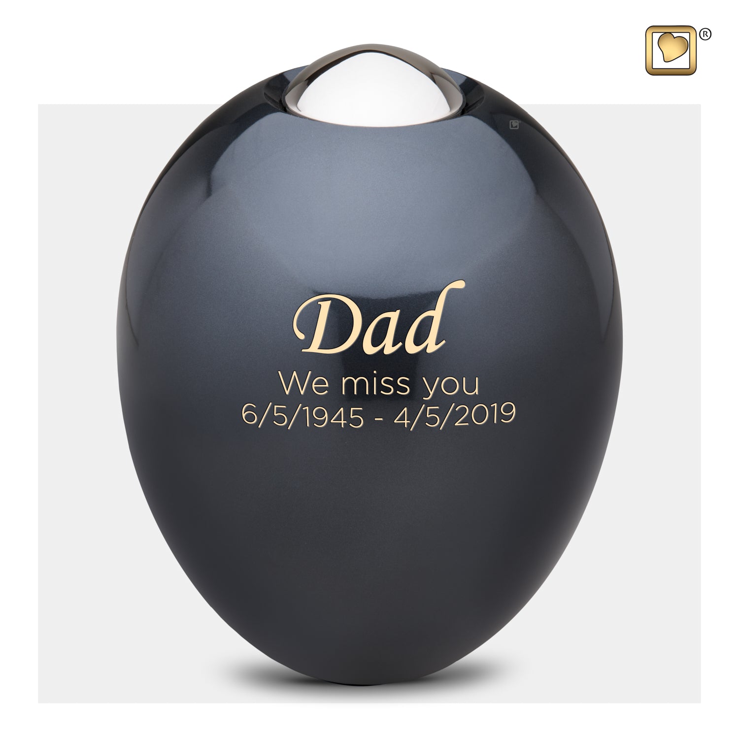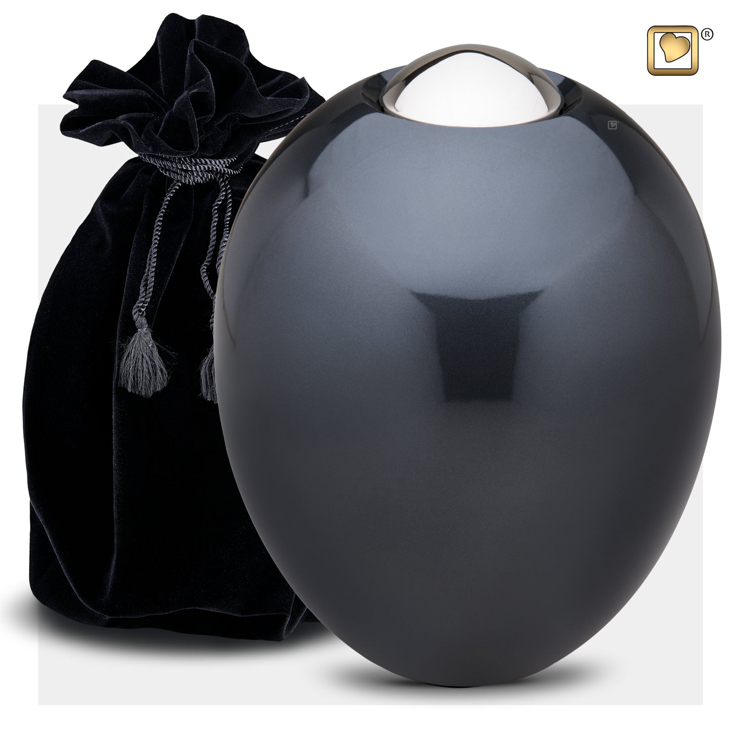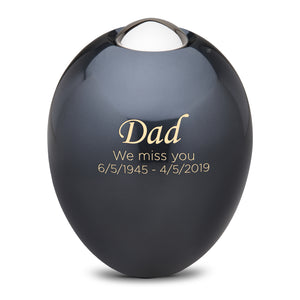 The rounded urn is curved and edge-free, with a broad surface that is perfect for engravings of messages or images. The sleek, ebony finish is accented with a polished silver cap, providing the perfect pairing of rich black and vibrant silver.