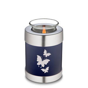 Honor the memory of your loved one with a Tealight Embrace Butterfly Cremation Urn for Ashes. This beautiful urn displays a flight of butterflies flying upwards. This is a perfect resting place for someone who embodied endurance, change, and renewal.