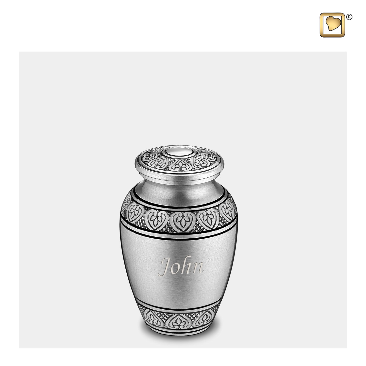 The Classics collection is designed to offer families beautiful, matching sets for their cremation collection. If you’re looking at one of the cremation urns, you’ll discover it can also be paired with matching cremation jewelry, keepsake urns, or specialty-shaped urns. Since the collection features brushed metallics, polished silvers, and minimal design elements, you can pair them together as a meaningful way to offer variety in remembering your loved one.