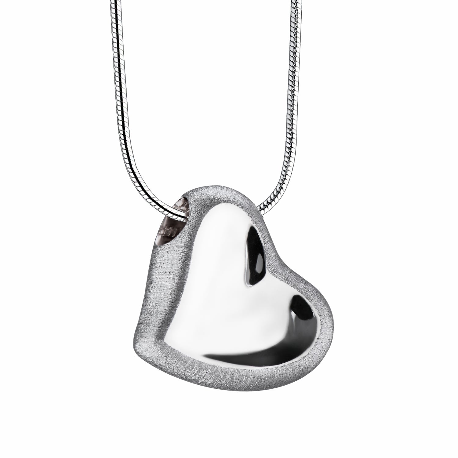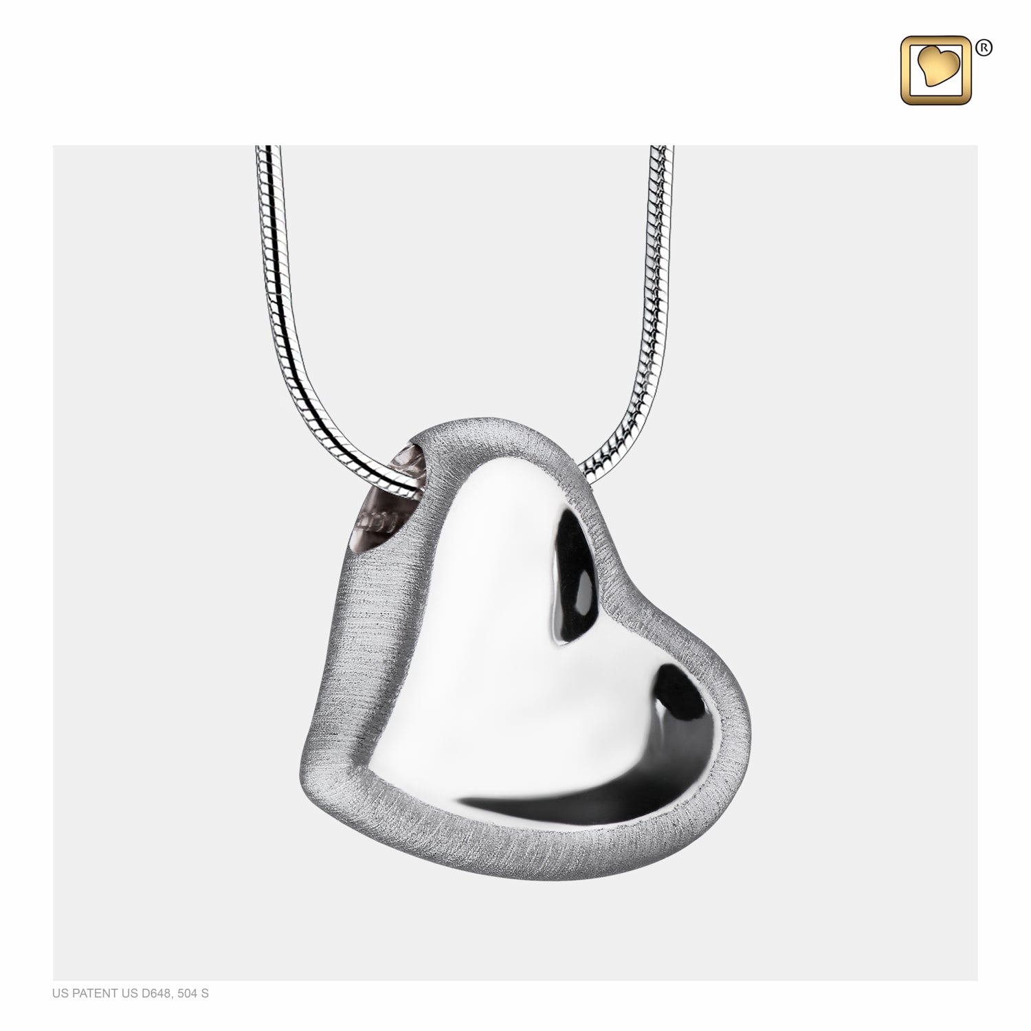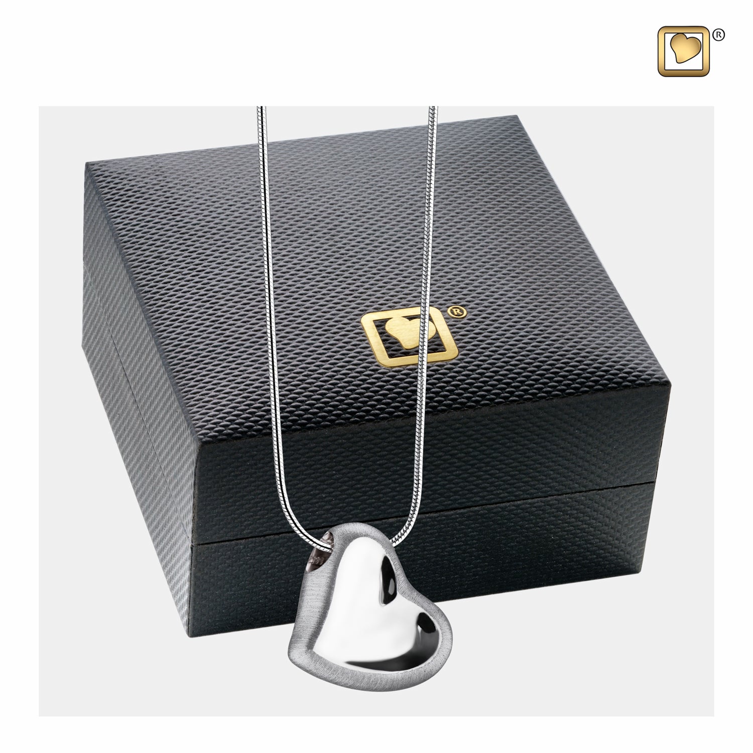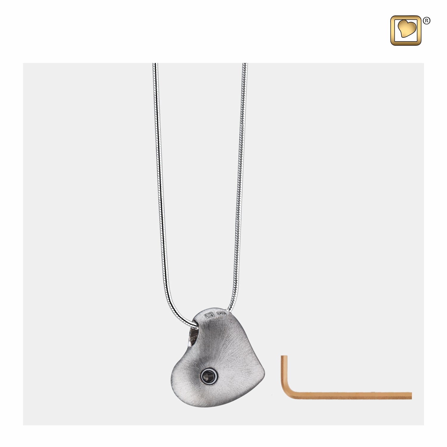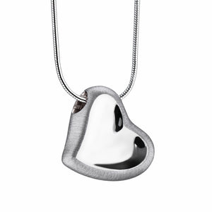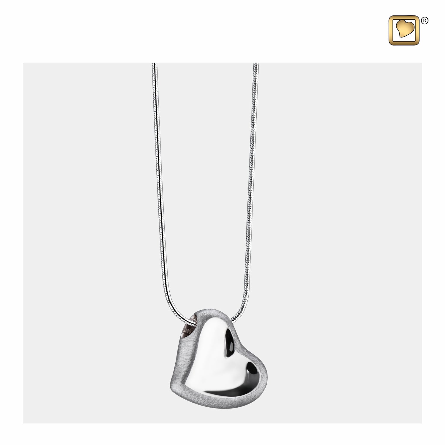 The Leaning Heart Pendant is a timeless symbol of love and remembrance, crafted with elegance and meaning. It's softly curved heart shape features smooth, sleek surfaces contrasted by textured, ridged edges, creating a stunning balance of refinement and depth.