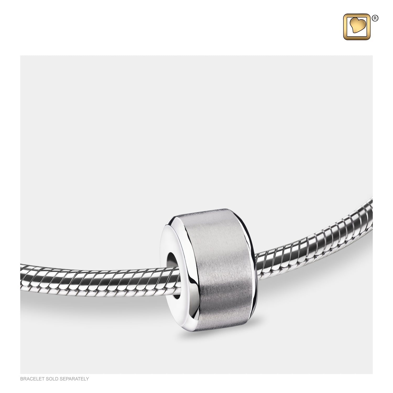 The Serenity bead features a a very modern and minimal design with a mix of brushed and shiny silver surfaces. A perfect way to keep the memories of your loved ones close.