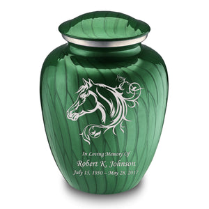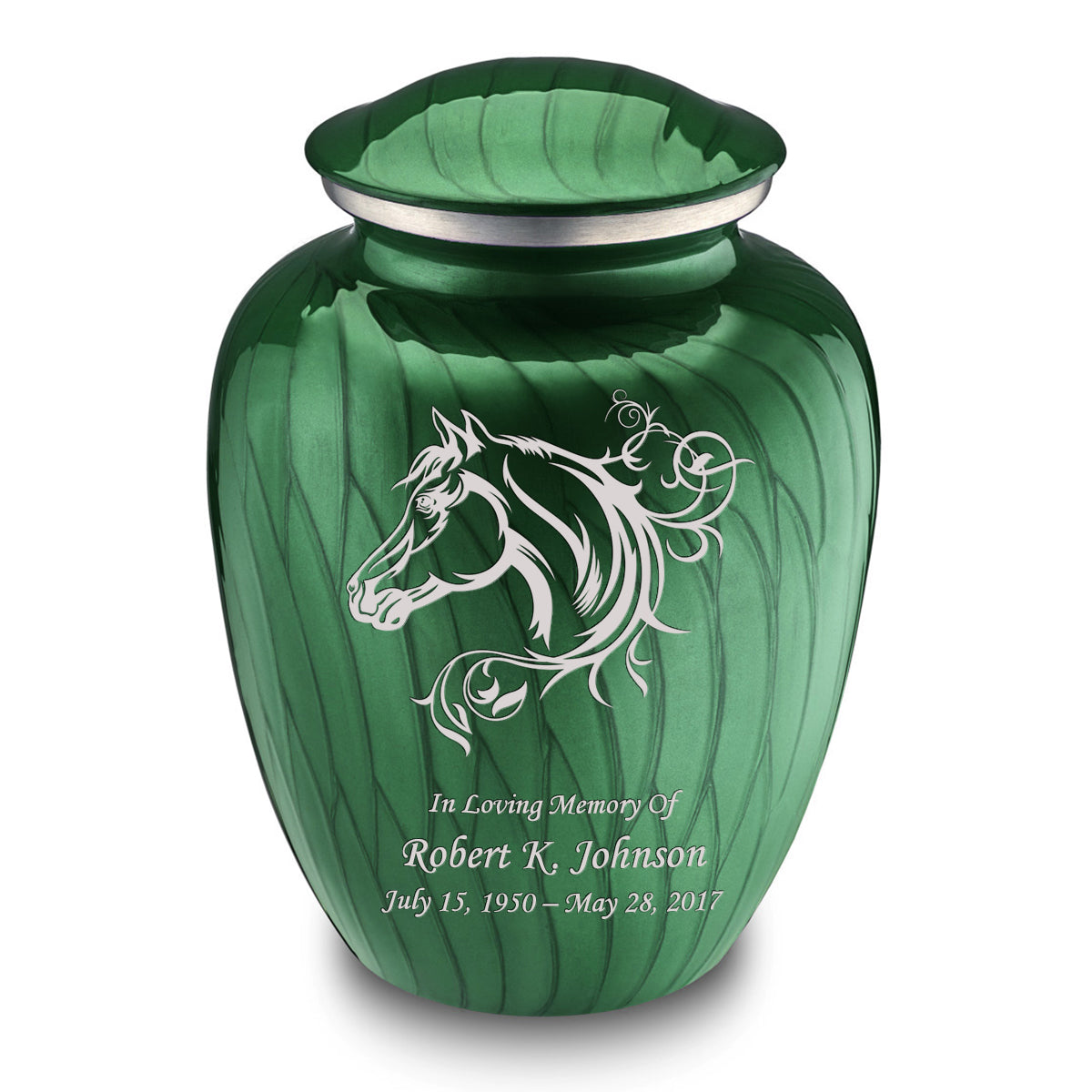 Honor the memory of your loved one with the Embrace Horse Cremation Urn for Ashes. This beautiful urn displays a majestic horse. This is a perfect resting place for someone who embodied nature, strength, kindness and endurance.