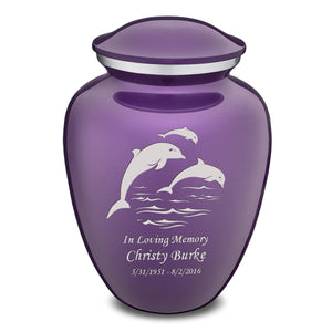 Honor the memory of your loved one with an Adult Embrace Dolphins Cremation Urn for Ashes. This beautiful urn displays three dolphins jumping into the ocean. The dolphins represent harmony, peace, and is the perfect resting place for someone fond of marine life or the ocean.