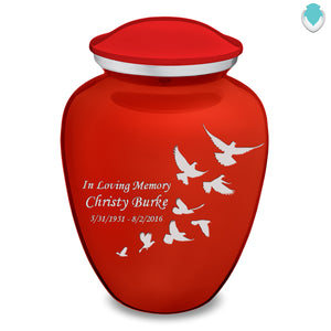 Honor the memory of your loved one with an Adult Embrace Doves Cremation Urn for Ashes. This beautiful urn displays a flock of doves flying upwards. This is a perfect resting place for someone who embodied freedom and peace.