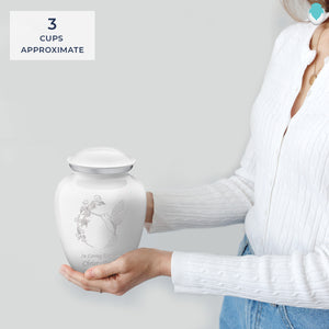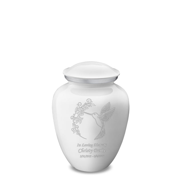 Honor the memory of your loved one with a Medium Embrace Hummingbird Cremation Urn for Ashes. This beautiful urn displays an elegant hummingbird. This is a perfect resting place for someone who embodied endurance, joy, and renewal.