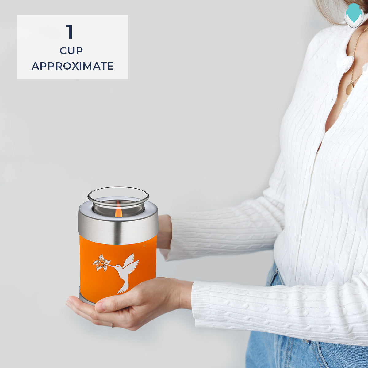 Honor the memory of your loved one with a Tealight Embrace Hummingbird Cremation Urn for Ashes. This beautiful urn displays an elegant hummingbird. This is a perfect resting place for someone who embodied endurance, joy, and renewal.