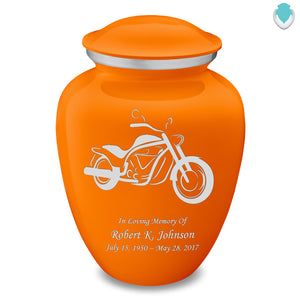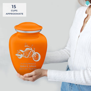 Honor the memory of your loved one with an Adult Embrace Motorcycle Cremation Urn for Ashes. This beautiful urn displays a silver motorcycle. This is a perfect resting place for a free spirit, someone who enjoyed riding the open road.