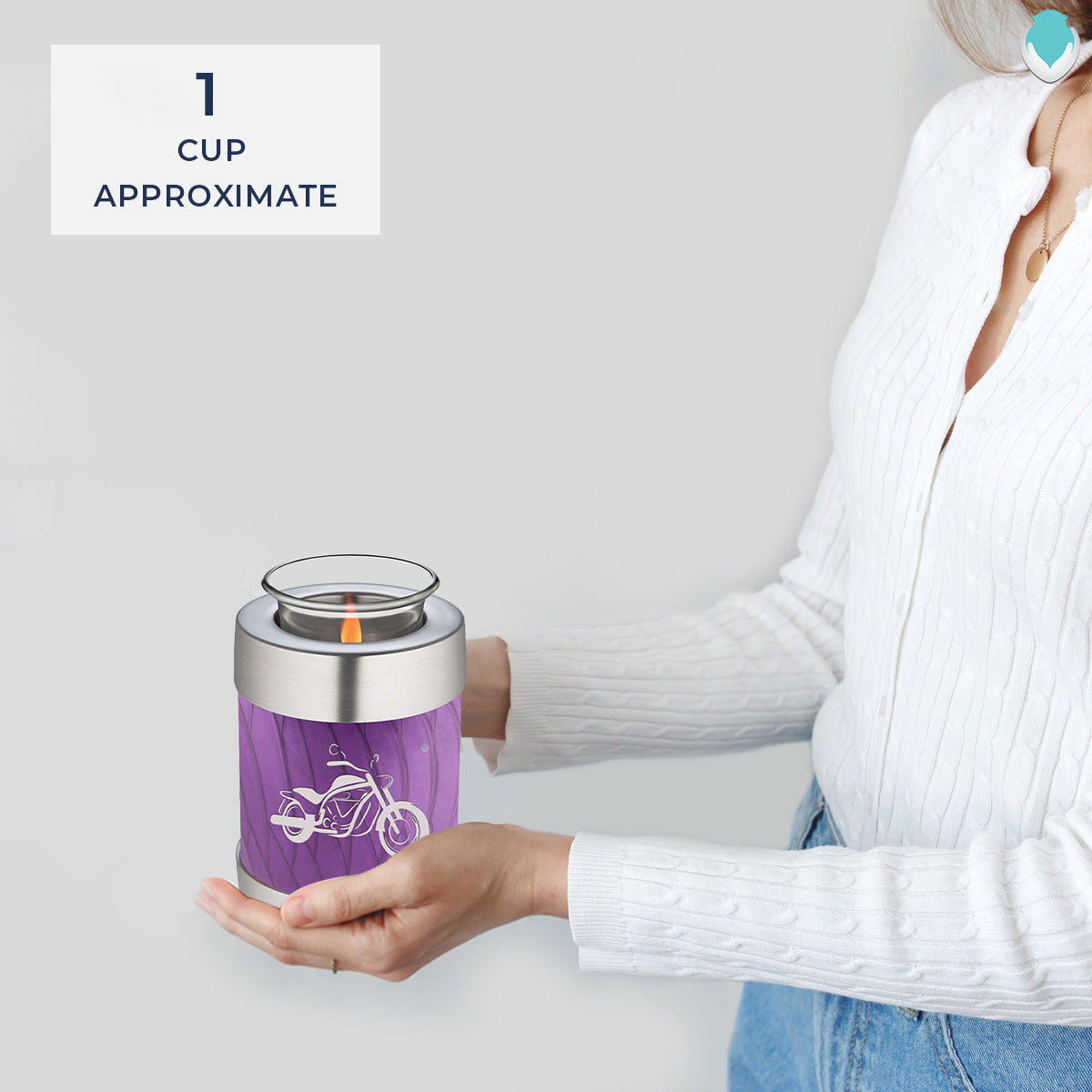 Honor the memory of your loved one with the Embrace Motorcycle Cremation Urn for Ashes. This beautiful urn displays a silver motorcycle. This is a perfect resting place for a free spirit, someone who enjoyed riding the open road.