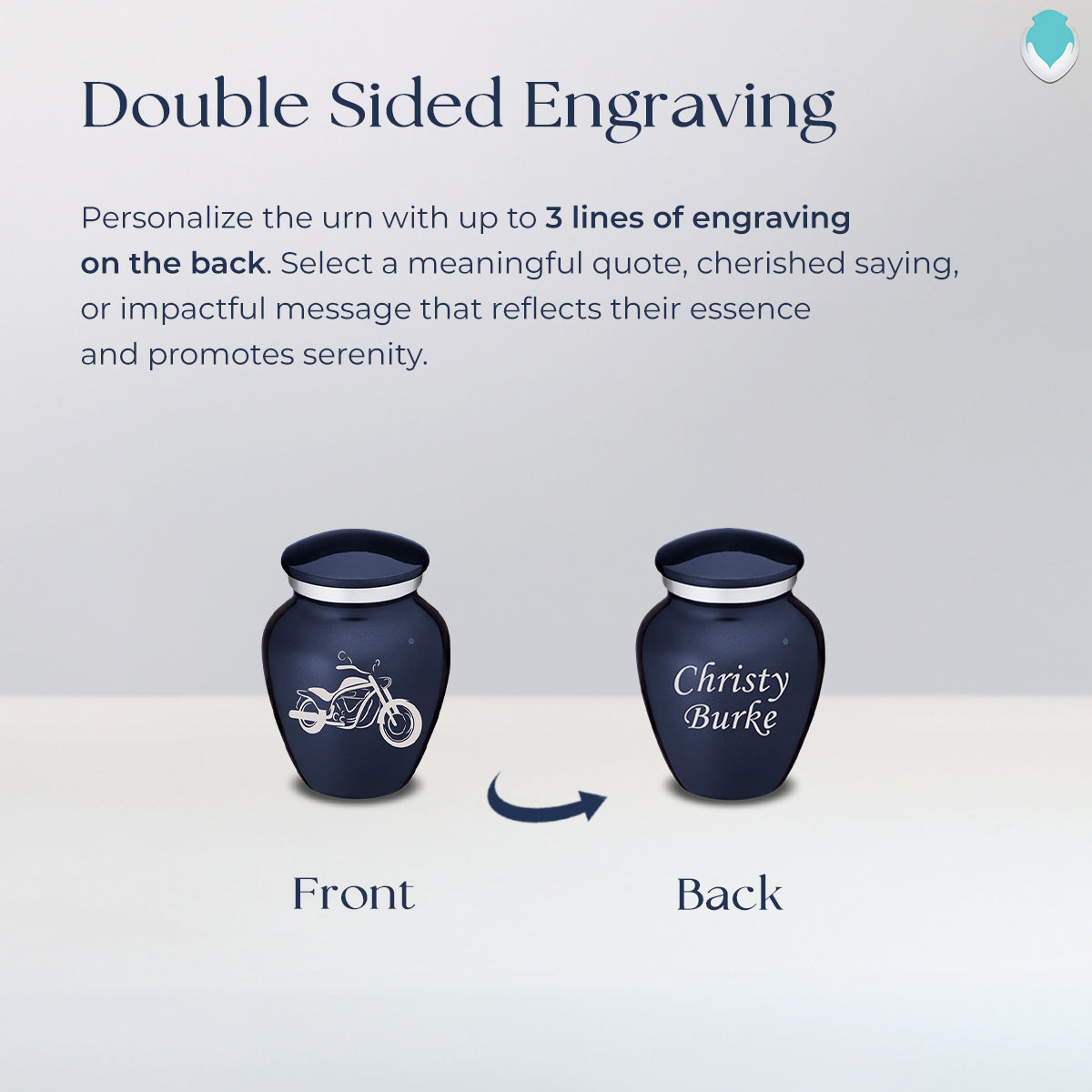 Yes, we do. Matching keepsake urns, small urns, and even memorial jewelry are available with motorcycle-themed designs to complement the full-size urn.