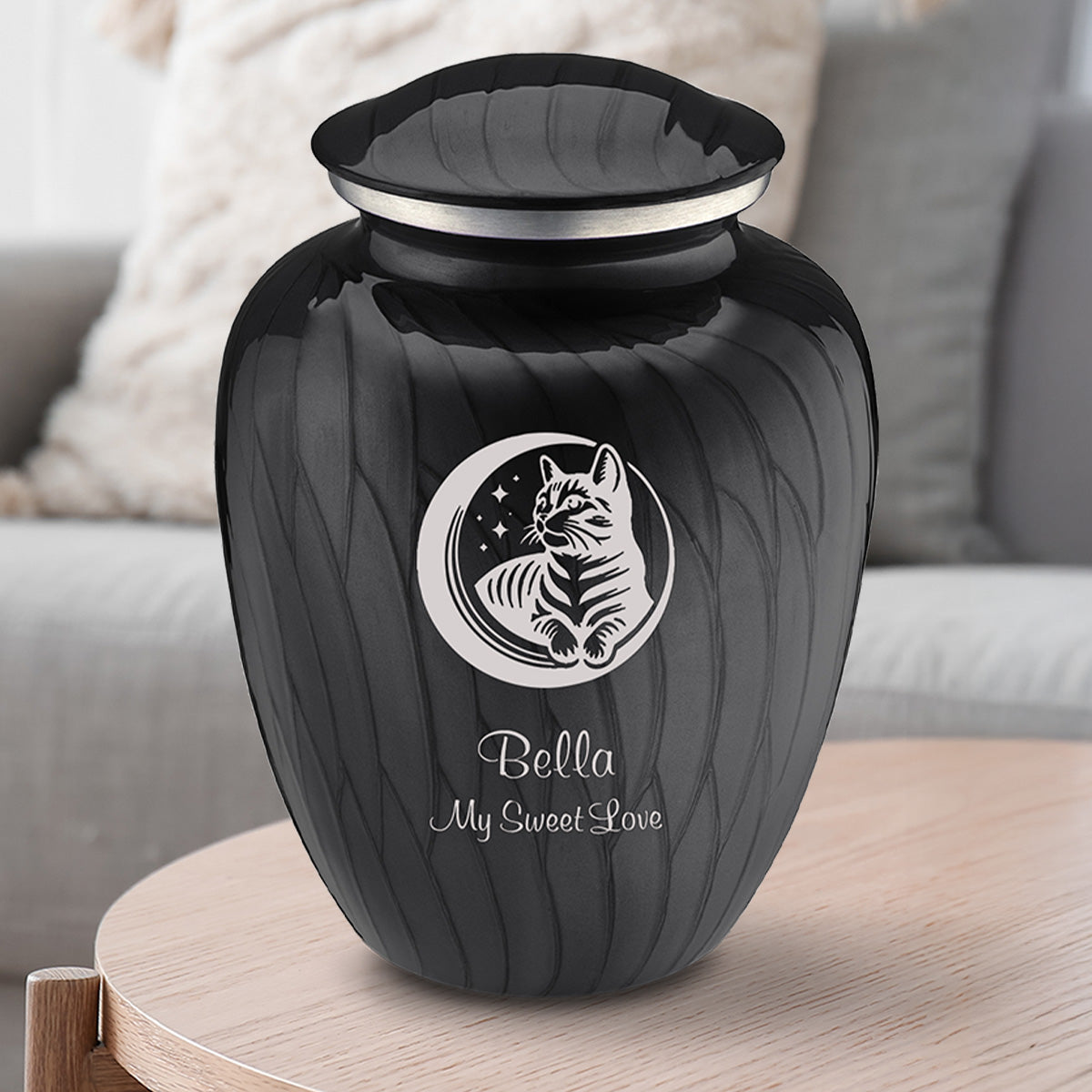 Honor the memory of your beloved cat with the Embrace Cat Pet Cremation Urn for ashes. This beautiful urn displays a minimalistic cat design. This gorgeous urn is a perfect resting place and forever home for your darling cat.