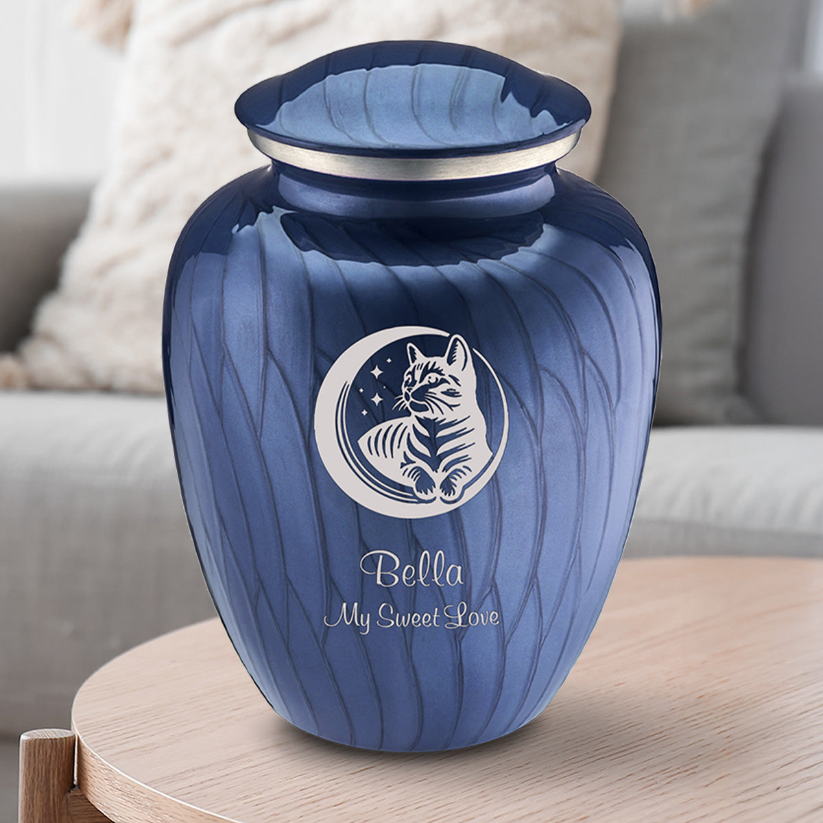 Honor the memory of your beloved cat with the Embrace Cat Pet Cremation Urn for ashes. This beautiful urn displays a minimalistic cat design. This gorgeous urn is a perfect resting place and forever home for your darling cat.
