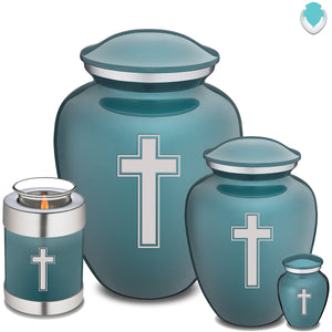 This Embrace Urn has a lovely teal finish with a brushed pewter threaded lid. The Teal coloring represents sophistication, strength, and power.