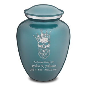 Honor the memory of your loved one with an Adult Embrace Skull Cremation Urn for Ashes. This beautiful urn displays a dramatic bearded skull with an ornate crown. This is the perfect resting place to immortalize someone who had a fighting spirit and who was unapologetically themselves.