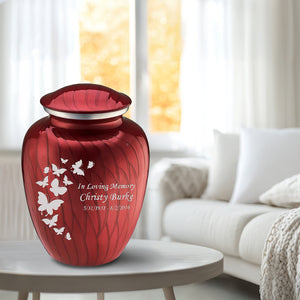 Honor the memory of your loved one with an Adult Embrace Pearl Butterfly Cremation Urn for Ashes. This beautiful urn displays a flight of butterflies flying upwards. This is a perfect resting place for someone who embodied endurance, change, and renewal.