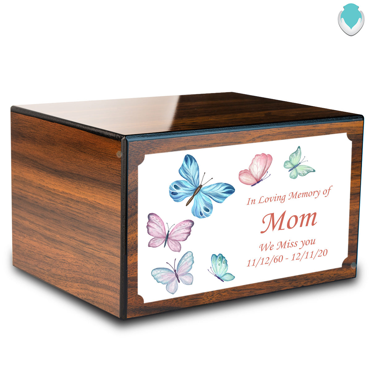 The Heritage Collection has the capacity to be fully personalized, making these totally unique places to lay your loved one to rest. The engravable brass plate included with these boxes are great for adding a touch of personality to the Heritage urns. Superior laser engraving technology on the brass plate ensures crisp and detailed designs to celebrate your loved one’s life, hobbies, interests, and character. Never has it been so easy to get a completely unique urn made and shipped within a matter of days. Simply reach out to us via our custom urns form, email, or phone call and let us know your vision. Most anything is possible, and our graphic designers are the best at creating designs especially for you on any Heritage Urn!