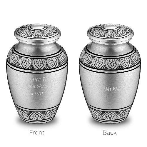 At GetUrns, most urns can be customized with personalized engraving and is laser-engraved or UV printed in-house with your choice of names, dates, phrases, fonts, and artwork. Our designers can help you create a unique, meaningful tribute that beautifully honors your loved one. If you’re looking for a custom design not shown in our options, please fill out this form and our team will be happy to work with you.