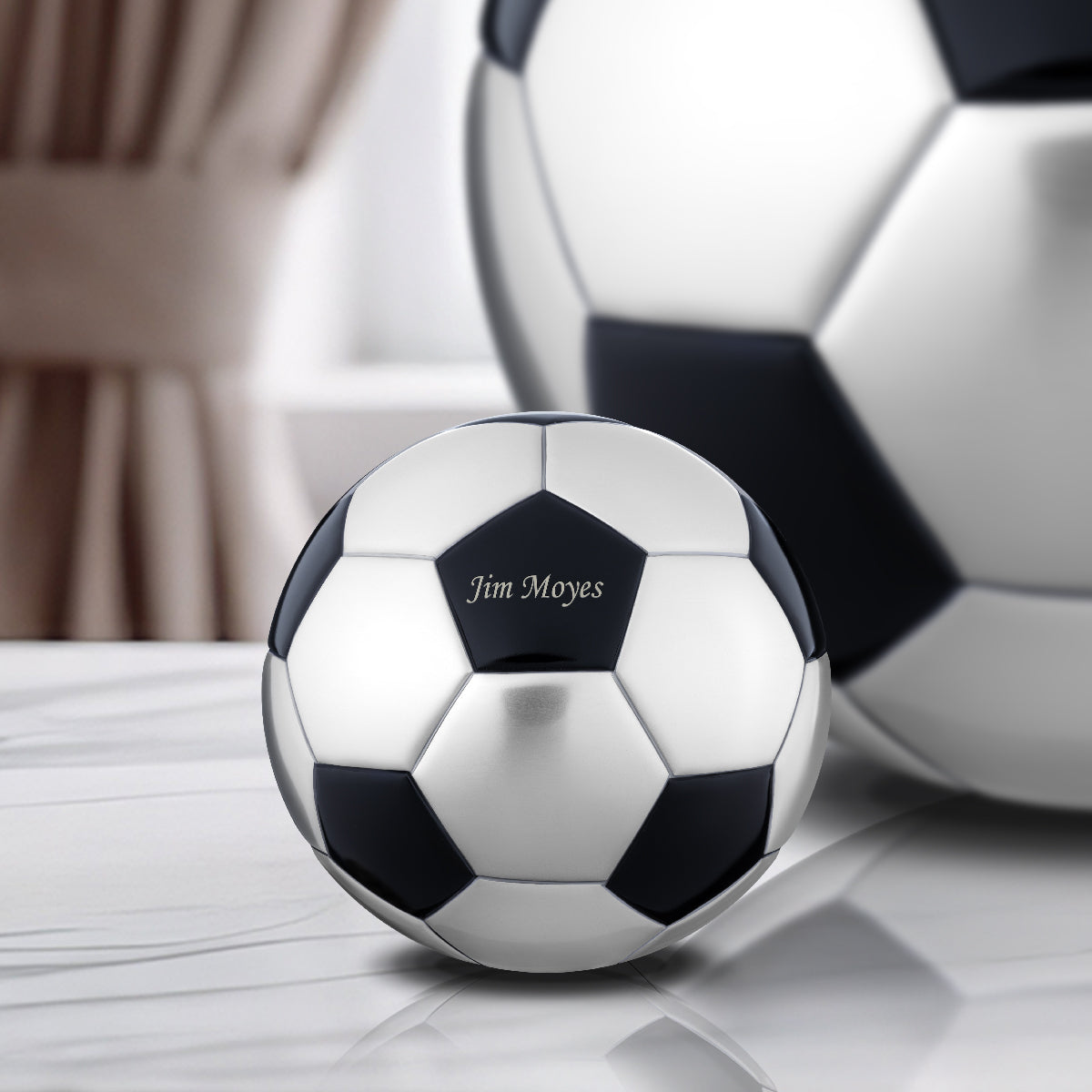 In the eyes of a soccer lover, the ball is a beacon of endless possibilities. Every dribble is a step towards discovery, every goal a testament to the spirit of perseverance. Soccer is more than a game; it is a journey where every moment is infused with passion and every play tells a story of commitment and joy. Small but mighty, GetUrns Matt Black and Bru Pewter keepsake urn captures the essence of the game and is a fitting tribute to your loved one.
