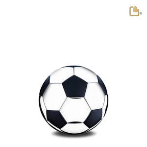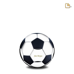 Honor your loved one’s lifelong love for the game with our standard football keepsake urn. It features a classic soccer ball design and is hand-crafted from durable, top-quality brass metal. From a sophisticated matte black finish, achieved with a special coating process that creates a smooth, non-reflective surface to a meticulously polished silver accent that creates a striking contrast that adds a touch of brilliance to the funeral urn.