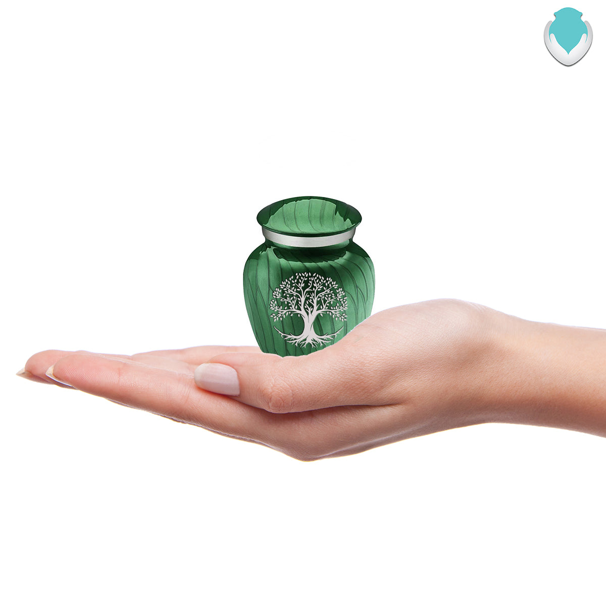 Our Adult Embrace Pearl Green Tree of Life Cremation Urn is a classic, amphora-shaped urn, ideal for someone who loved this Earth. Its bright green color is a vibrant background for the Tree of Life, an image famous in many religions and folktales around the world. The tree itself, branches above, roots below, represents the unifying life force behind the cycle of life and death.