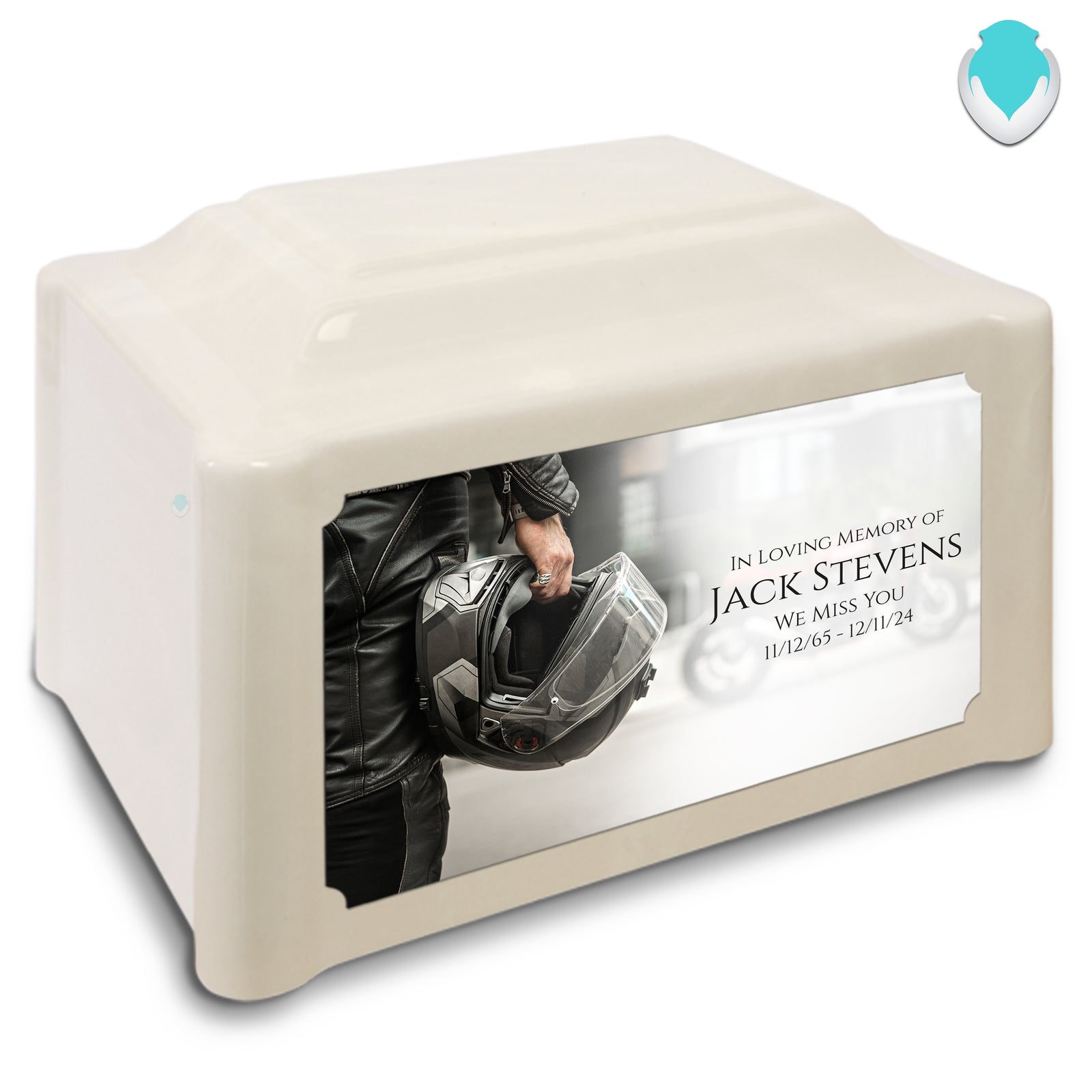 The Devotion has the capacity to be fully personalized, making these totally unique places to lay your loved one to rest. The engravable brass plate included with these boxes are great for adding a touch of personality to the Devotion urns. Superior laser engraving technology on the brass plate ensures crisp and detailed designs to celebrate your loved one’s life, hobbies, interests, and character.