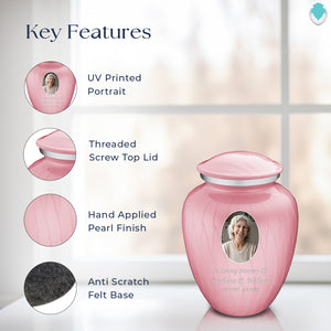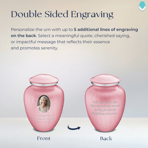 The Embrace Portrait Cremation Urn for Ashes allows you to create a truly personal and unique memorial for your loved one. This beautiful urn acts as a blank canvas, ready to be adorned with custom designs and pictures that hold special meaning. Choose your favorite image of your loved one and add a personalized message to make it even more special.