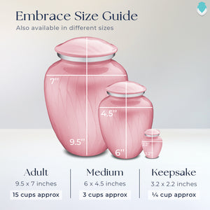 The Medium Embrace Urns have a simple yet elegant design that combines the classic urn silhouette with modern motifs. This medium urn has a capacity of 44 Cu Inches, making it suitable for holding a portion of adult ashes or ashes of anyone 44 lbs. or less.