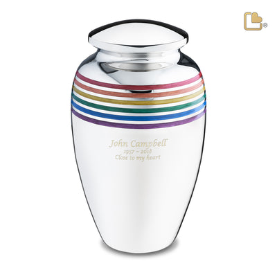 The Pride collection of cremation urns are striking, bold, and meaningful, and an iconic way to memorialize the life and death of someone who lived as a member of the LGBTQ+ community.