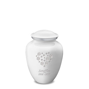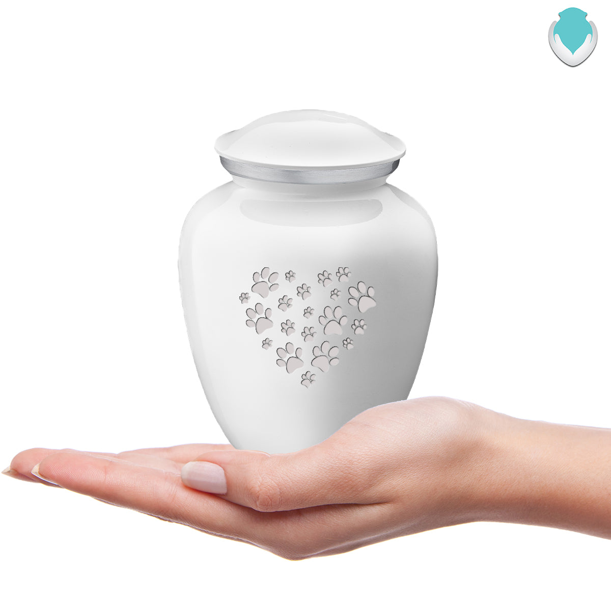 Honor the memory of your beloved pet with the Embrace Heart Paws Pet Cremation Urn for ashes. This beautiful urn displays a heart shape made with tiny little paws. This gorgeous urn is a perfect resting place and forever home for your furry friend.