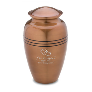 Spiritually, copper is recognized by some as being a powerful earth element that allows spiritual energy to transfer back and forth between two souls. This can make it a powerful symbol after the passing of a loved one. Although the urn has a minimal design, it is giving a touch of elegance with three graceful black lines tracing the edge.