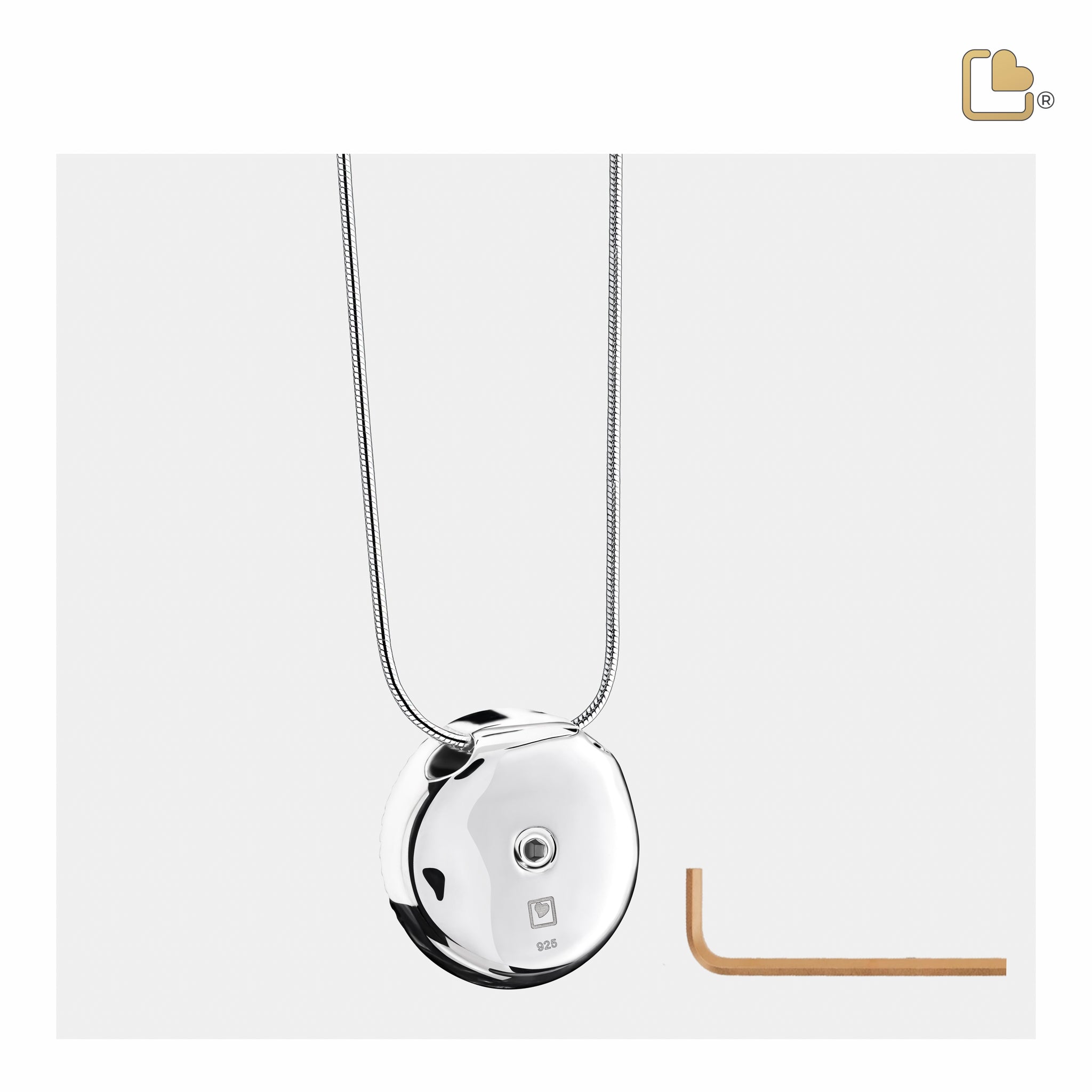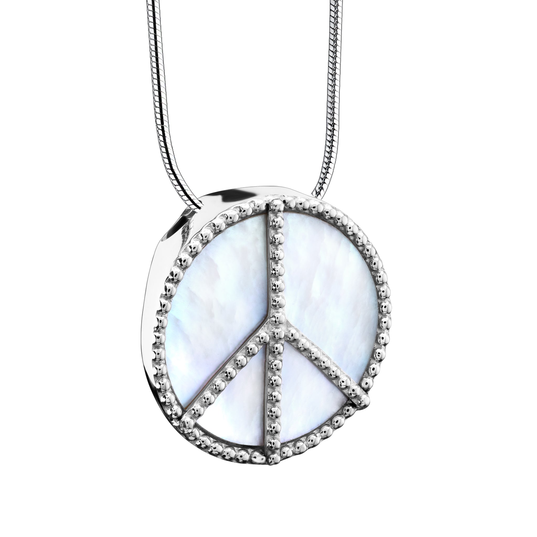 Carry the memory of your loved one with this gorgeous Peace Shaped cremation pendant for ashes. The white pearlescent Mother of Pearl together with the global symbol for peace makes this pendant unique. The comforting colors and design of this pendant helps to honor the memory of your loved one. Made of 925 Sterling Silver with a small compartment at the back which can be filled with ashes, dried flowers or lock of hair. It comes with a high quality Jewellry Display box for safe storage when not being worn.