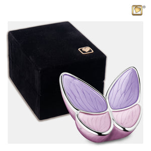 The butterfly, a delicate emblem of transformation and rebirth, reminds us of life’s enduring cycles. Just as it ascends after its metamorphosis, the soul transcends, finding freedom and serenity beyond. The Wings of Hope Keepsake Urn in Pearl Lavender and Polished Silver, with a capacity of 4 cu. Inches of Ashes offers a heartfelt way to hold a small portion of a loved one’s essence, symbolizing their eternal journey. The harmonious hues of lavender and pink inspire peace, healing, and unconditional love. Lavender symbolizes spiritual connection and tranquil healing, while soft pink embodies tenderness, compassion, and love that remains everlasting.
