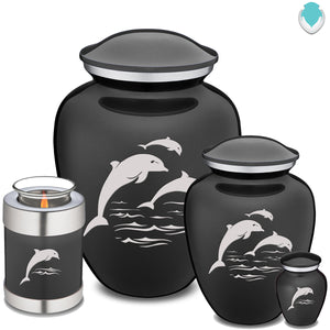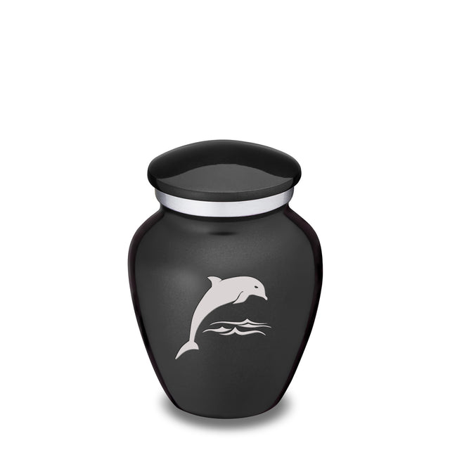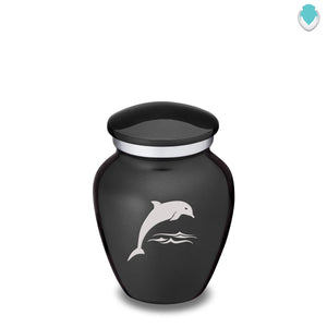 Honor the memory of your loved one with a Keepsake Embrace Dolphins Cremation Urn for Ashes. This beautiful urn displays a dolphin jumping into the ocean. The dolphin represents harmony, peace, and is the perfect resting place for someone fond of marine life or the ocean.