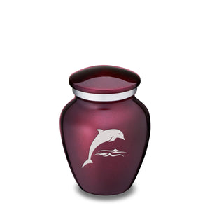 Honor the memory of your loved one with a Keepsake Embrace Dolphins Cremation Urn for Ashes. This beautiful urn displays a dolphin jumping into the ocean. The dolphin represents harmony, peace, and is the perfect resting place for someone fond of marine life or the ocean.