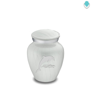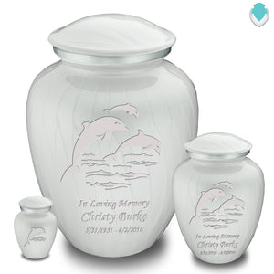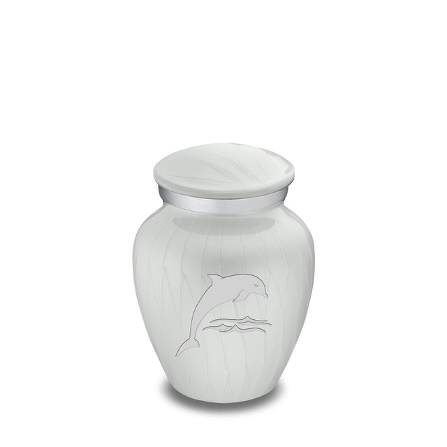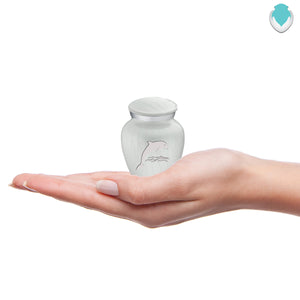 Honor the memory of your loved one with the Keepsake Embrace Dolphins Cremation Urn for Ashes. This beautiful urn displays dolphins jumping into the ocean. The dolphins represent harmony, peace, and is the perfect resting place for someone fond of marine life or the ocean.