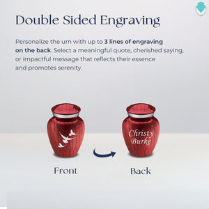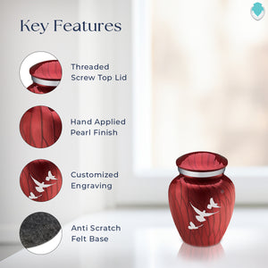 Honor the memory of your loved one with the Keepsake Embrace Doves Cremation Urn for Ashes. This beautiful urn displays a flock of doves flying upwards. This is a perfect resting place for someone who embodied freedom and peace.