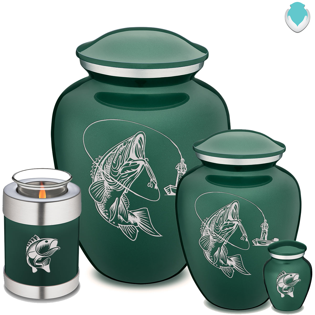 Honor the memory of your loved one with a Medium Embrace Fishing Cremation Urn for Ashes. This beautiful urn displays a scene of a fisher catching a prized fish. This is a perfect resting place for someone who embodied nature, peace, wisdom, and endurance.