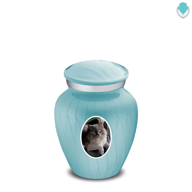 The Keepsake Embrace Pearl Portrait Urns have a simple yet elegant design that combines the classic urn silhouette with modern motifs. This keepsake urn has a capacity of 3.5Cu Inches, making it suitable for holding a small portion of the cremains.