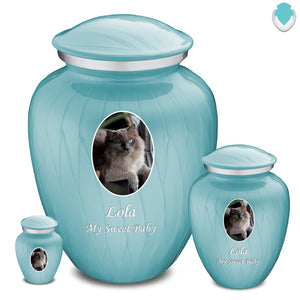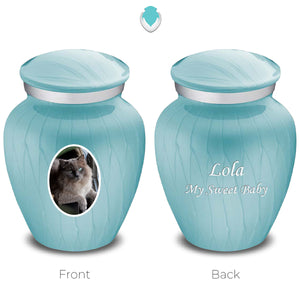 Keepsake Embrace Pearl Portrait Urns are simple yet elegant in their design; drawing from the classic urn combined with modern motifs. A Keepsake Embrace Urn is 3.5 Cu Inches (appropriate for sharing).