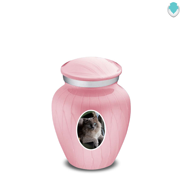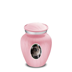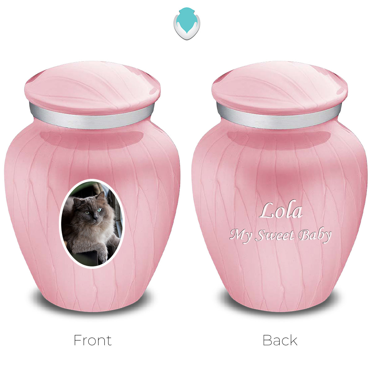 The Keepsake Embrace Pearl Portrait Urns have a simple yet elegant design that combines the classic urn silhouette with modern motifs. This keepsake urn has a capacity of 3.5Cu Inches, making it suitable for holding a small portion of the cremains.