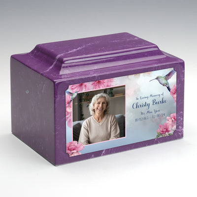 Whether it’s the delicate beauty of butterflies, the thrill of football, the freedom of a motorcycle, the grace of a hummingbird, or even the wisdom of the Tree of Life. While we have various motifs to resonate with every story, our cultured marble urns also come in a spectrum of colors.