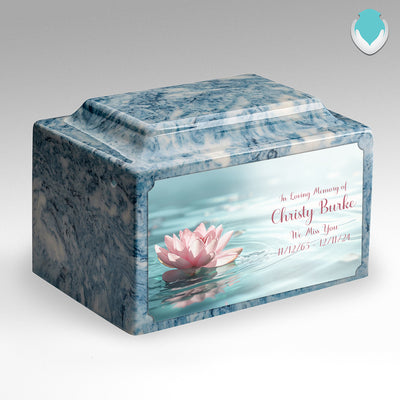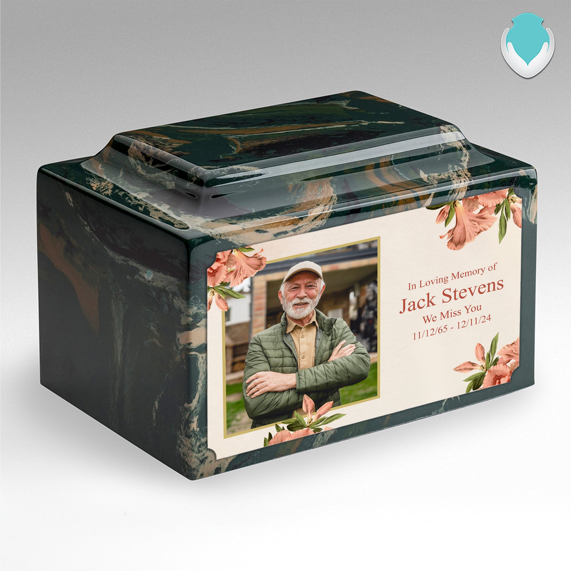 GetUrns’ collection of marble urns for ashes comes with a range of customization options. With the high-end artistry of UV printing, one can get an imprint of their loved one’s image on the photo urn, and with top-quality laser engraving technology, add important messages, quotes, and dates to the metal plaques placed on the Urn. These personalized touches transform the urn into a heartfelt tribute. Legacy Cremation Urns are also designed to fit in specific niches within a columbarium. You are advised to consult your funeral professional, for precise measurements and detailed instructions.
