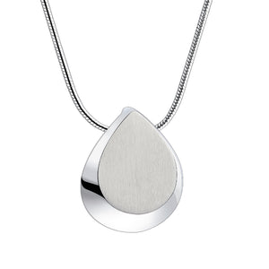 Introducing the elegant and timeless Drop™ Pendant Cremation Jewelry designed for holding a small pinch of ashes in Polished and Brushed Silver, a distinguished choice for those seeking cremation jewelry for ashes that blend sophistication with understated beauty. Our cremation jewelry is thoughtfully designed to provide a fitting tribute to your loved one's memory.