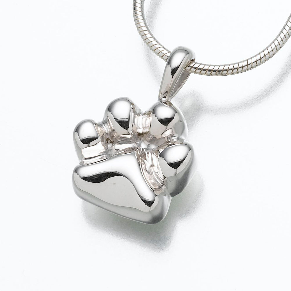 Our animal paw print is fillable through a threaded screw in the back. Each piece of cremation jewelry can hold a small amount of cremation ashes.