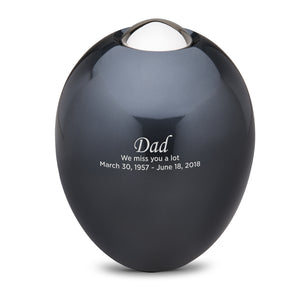The rounded urn is curved and edge-free, with a broad surface that is perfect for engravings of messages or images. The sleek, ebony finish is accented with a polished silver cap, providing the perfect pairing of rich black and vibrant silver.