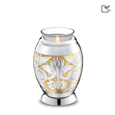 The Elegant Ornate Collection of cremation urns features one of the more exquisitely designed and strikingly ornate series of cremation pieces one can find. The entire collection features a non-traditional design that is remarkably beautiful to behold with a brilliance of color and intricacy in design that are unparalleled in other collections.