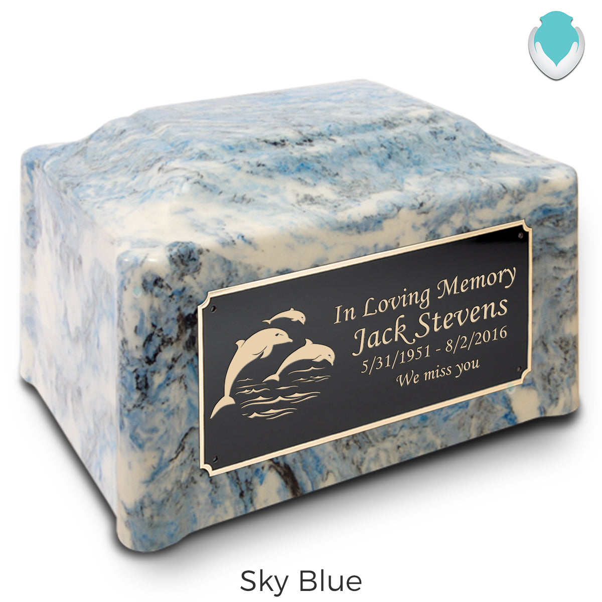 The Devotion Cultured Marble urn is a strong and traditional urn which serves as a sturdy final resting place for your lost loved one. Available in various colors, the Devotion suits every personality and taste.