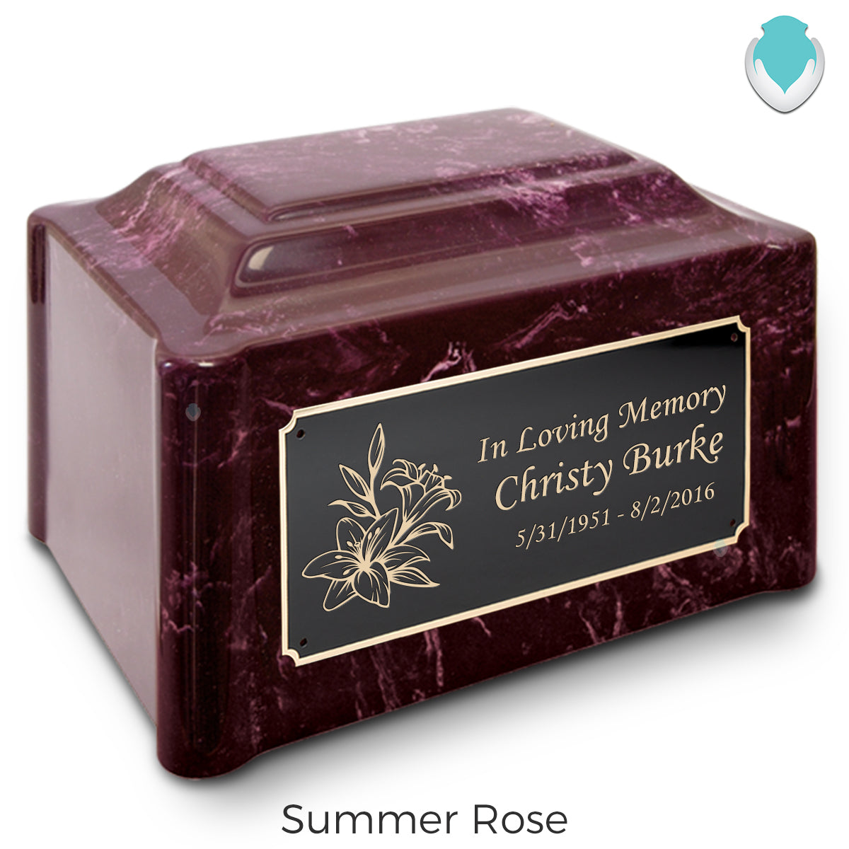 The Devotion Cultured Marble urn is a strong and traditional urn which serves as a sturdy final resting place for your lost loved one. Available in various colors, the Devotion suits every personality and taste.