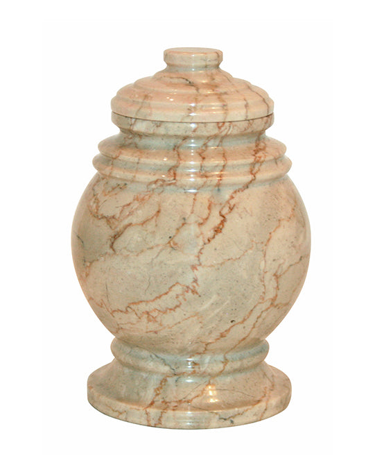 The Princess Cameo keepsake is made from the Cameo marble this marble has a Tan base with Brown and Pink veining. Each keepsake is made from one block of stone and not pieced together this helps to prevent the keepsake from cracking and allows the keepsake to be seamless.