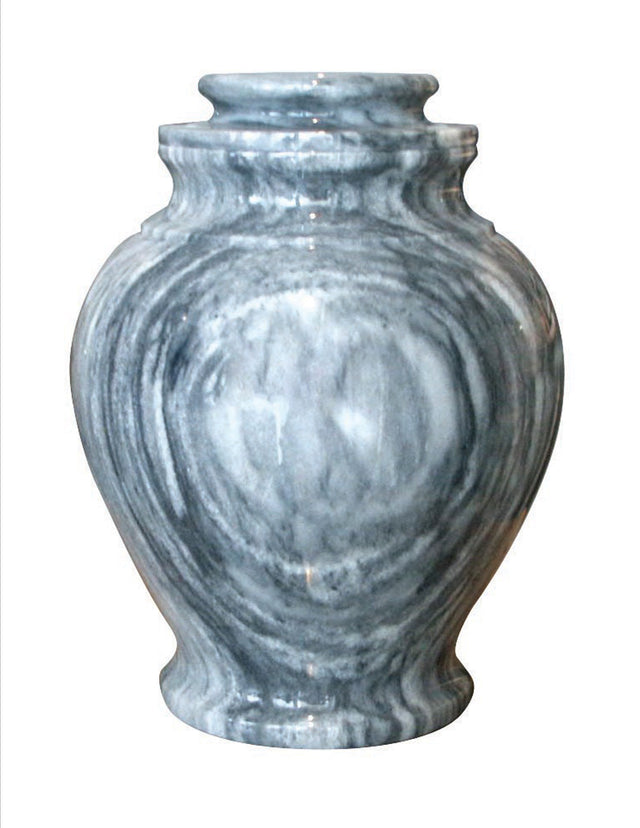 The Serenity Cashmere Gray adult urn to stand out above all other urns of its kind made from one of the most beautiful natural marble stones around Cashmere Gray Marble. Overall color is gray along with white and black natural veining that brings a one of a kind look to this urn.